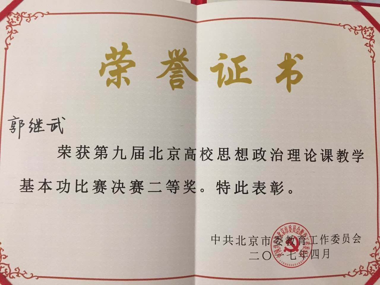 郭继武老师和宋平明老师分别荣获“中国近代史纲要”二等奖和“形势与政策”三等奖。
