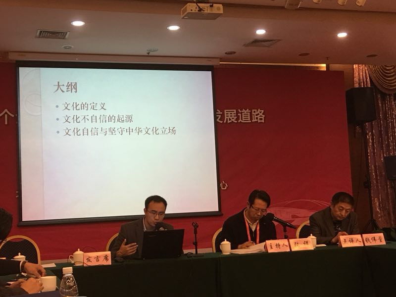 青年教师雷爱民从“坚守中华文化立场与文化自信”角度阐释了文化自信与坚守中华文化立场之间的关系。