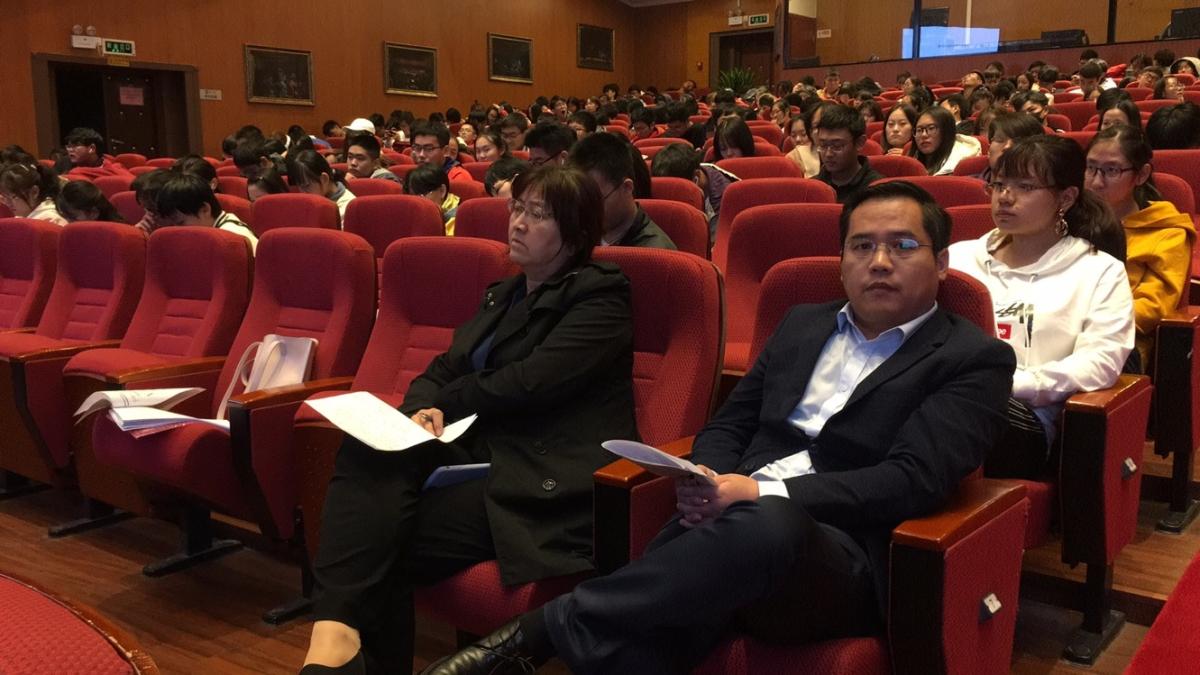 、经济学院、学生工作部各位老师与千余名19级新生共同听讲了该讲座。