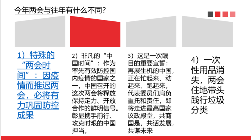 推动任课教师在集体学习和集体备课基础上开展“两会精神,进课堂,大家谈”活动,第一时间组织同学们学习两会精神。