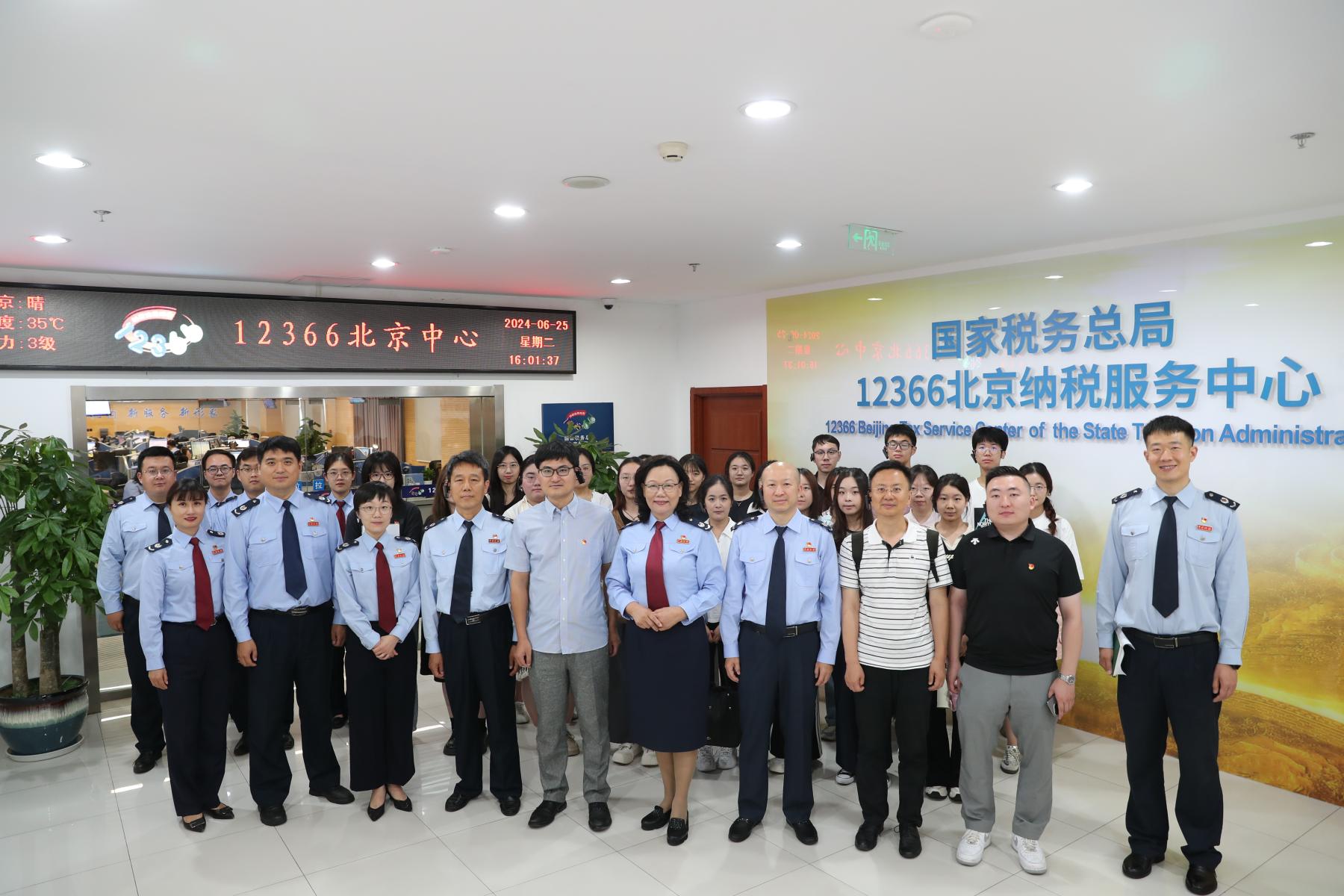 师生在张瑞菊局长的陪同下,全方位参观了国家税务总局12366北京纳税服务中心。通过讲解员细致认真的介绍以及对现场工作的直观感受,大家对税务服务工作的专业度深受震撼。