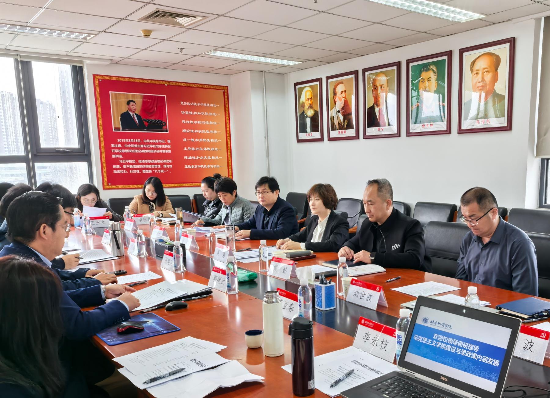 师资队伍建设、教学、科研等方面的工作进展,剖析了在学科带头人、高水平论文与获奖等方面的工作短板。党总支书记张建宝就落实思政课内涵发展系列文件精神拟采取的重点举措进行了专项报告,马院学科负责人和教研室主任进而围绕各自学科和课程就如何进一步细化工作举措进行了工作研讨。